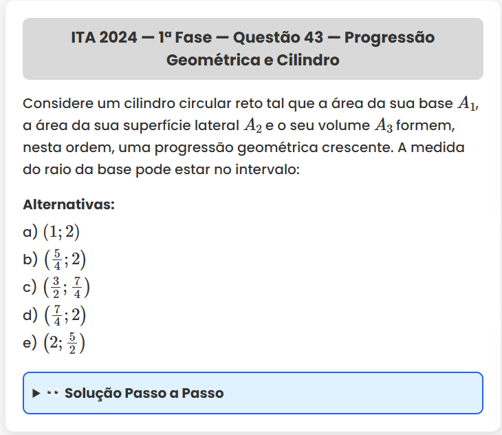 Continue lendoITA 2024 — 1ª Fase — Questão 43 ITA 2024 — 1ª Fase — Questão 43 — Progressão Geométrica e