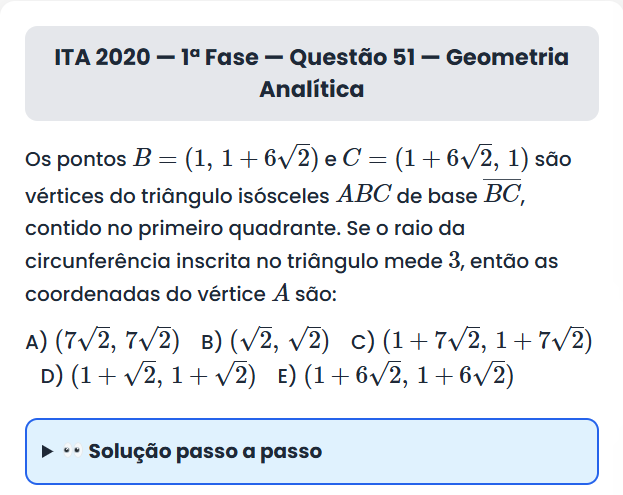 Matemática ITA 2020: Questão 55 — 1ª Fase