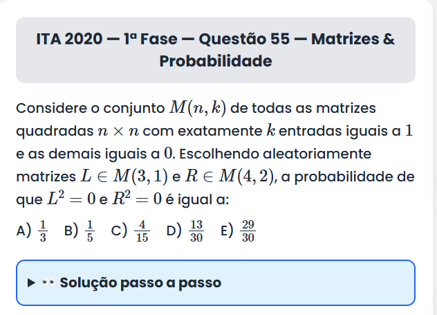 ITA 2020 — 1ª Fase — Questão 55 ITA 2020 — 1ª Fase — Questão 55 — Matrizes & Probabilidade