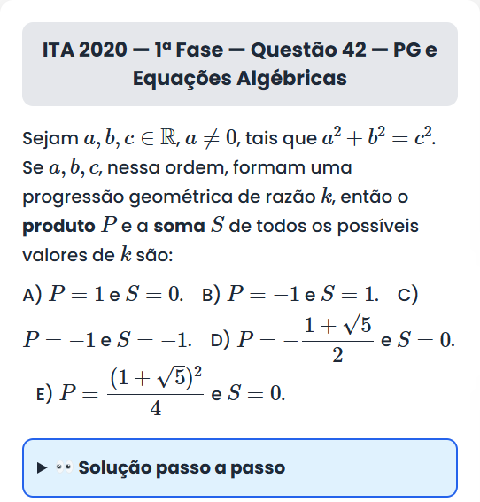 Continue lendoITA 2020 — 1ª Fase — Questão 42 ITA 2020 — 1ª Fase — Questão 42 — PG e Equações