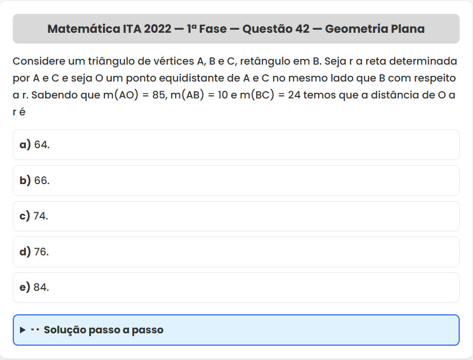 Continue lendoITA 2022 — 1ª Fase — Questão 42 ITA 2022 — 1ª Fase — Questão 42 — Geometria Plana Considere
