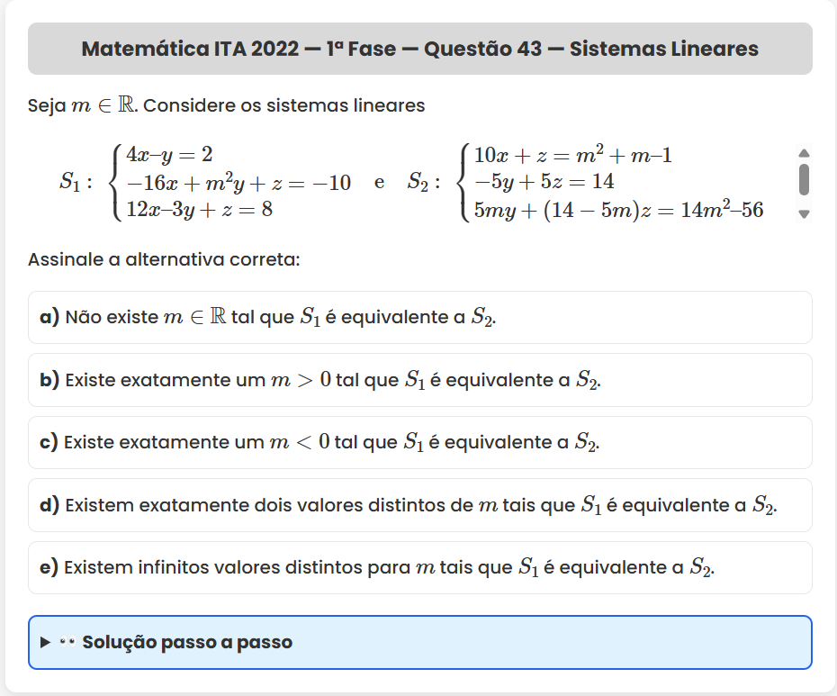 Continue lendoITA 2022 — 1ª Fase — Questão 43 ITA 2022 — 1ª Fase — Questão 43 — Sistemas Lineares Seja