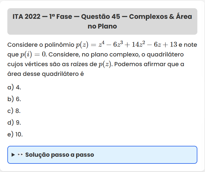Continue lendoITA 2022 — 1ª Fase — Questão 45 ITA 2022 — 1ª Fase — Questão 45 — Complexos & Área