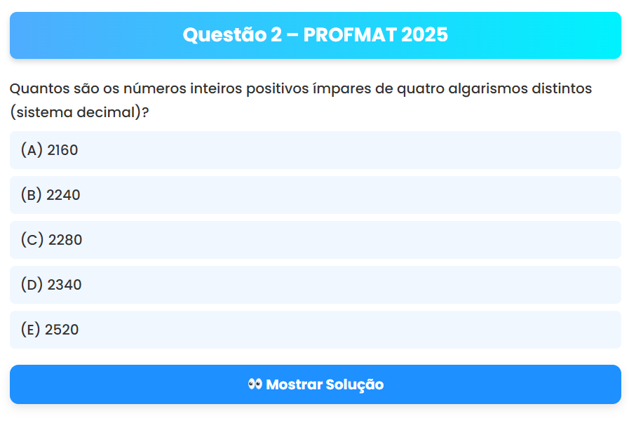 Continue lendoPROFMAT 2025 – Questão 2 | Contagem de Números Ímpares PROFMAT 2025 – Questão 2 | Contagem de Números Ímpares