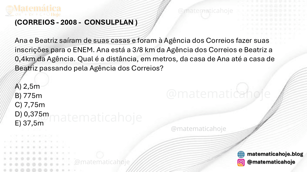 Continue lendo(CORREIOS – 2008 – CONSULPLAN ) Ana e Beatriz saíram de suas casas e foram à Agência dos Correios fazer