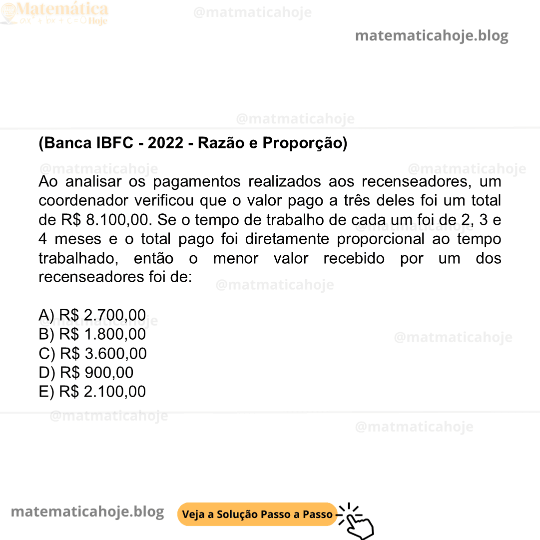 Confira questões resolvidas de Matemática da banca IBFC, organizadas e explicadas passo a passo. Ideal para quem busca praticar e