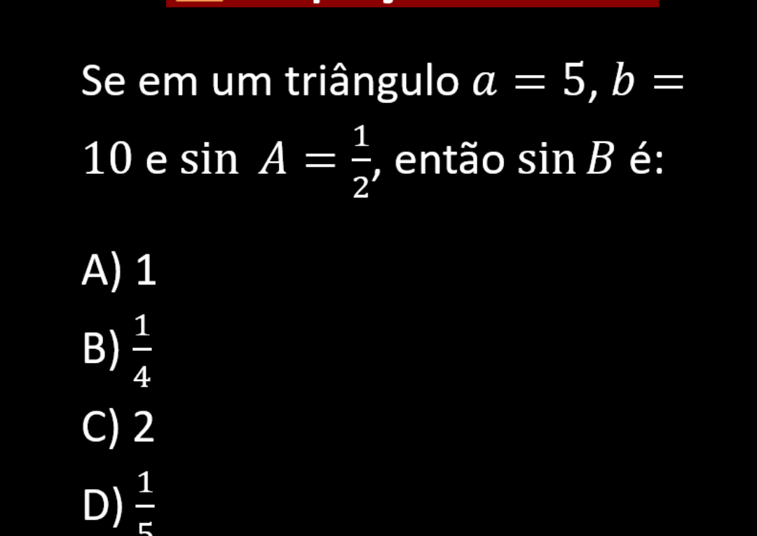 Continue lendoVer solução completa 1 – FĂłrmula da Lei dos Senos: a / sen A = b / sen B 2