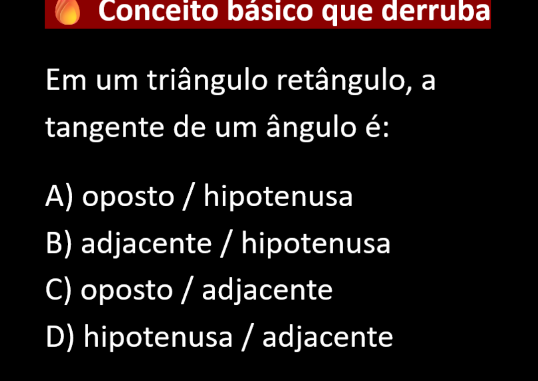 Continue lendoVer solução completa 1 – Entendendo o conceito: A tangente Ă© uma razĂŁo trigonomĂ©trica no triĂąngulo retĂąngulo. 2 – Definição