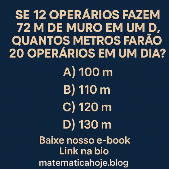 Continue lendoQuestão – Regra de Três Enunciado: Se 12 operários fazem 72 metros de muro em um dia, quantos metros farão