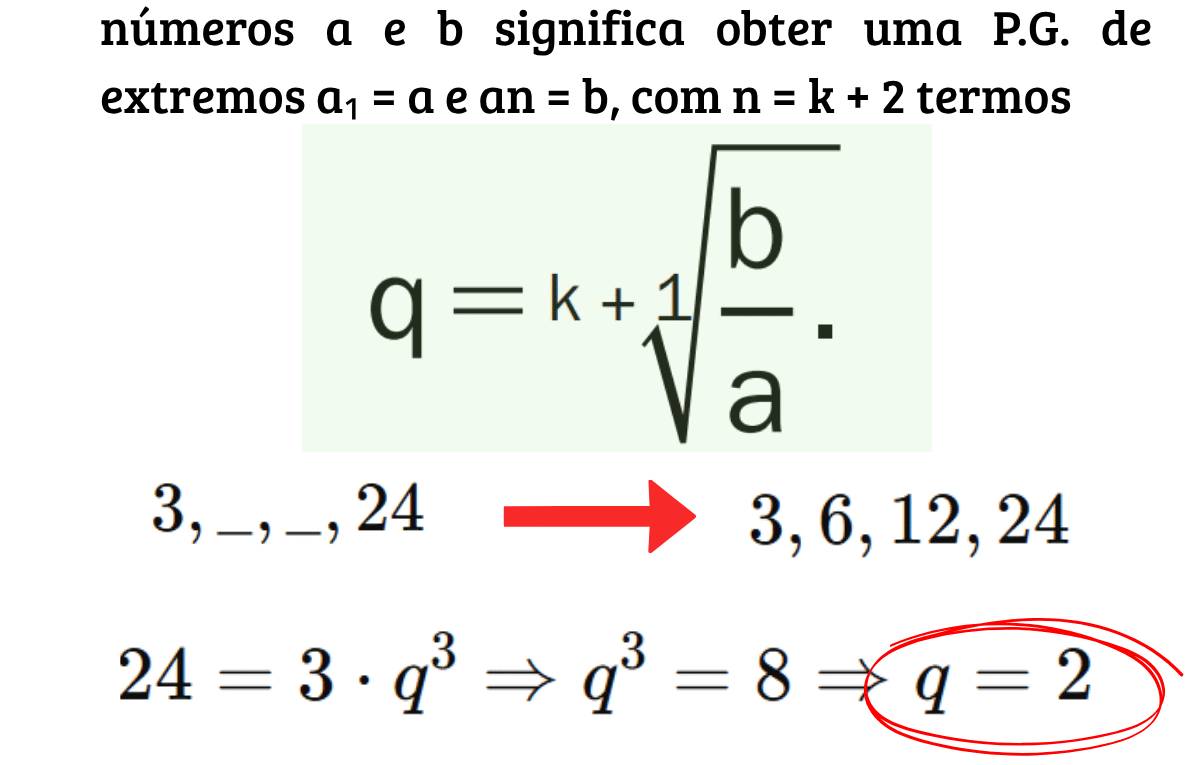 Continue lendoInterpolação Geométrica — Matemática Hoje Interpolação Geométrica Interpolar k meios geométricos entre \(a\) e \(b\) significa construir uma P.G. de