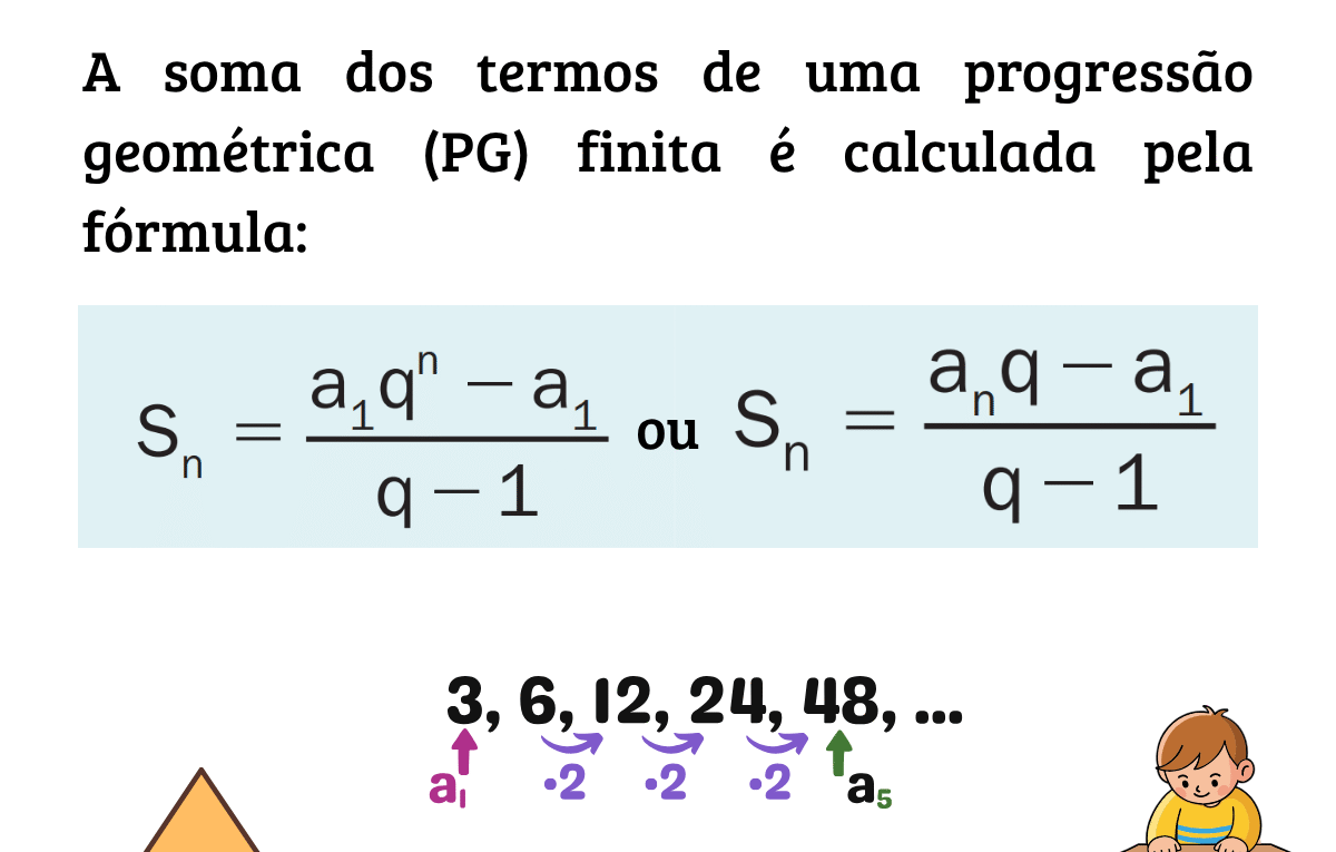 Continue lendoSoma dos Termos da Progressão Geométrica (P.G.) Finita — Matemática Hoje Soma dos Termos de P.G. Finita (sequência geométrica) Numa