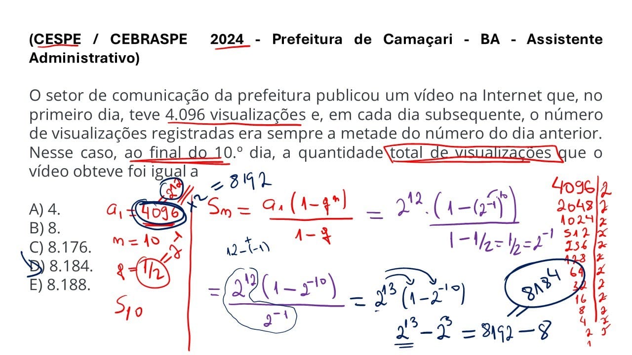 Continue lendoDescubra uma coleção de questões sobre Sequências, focadas em provas de concursos públicos. Esta categoria inclui exercícios sobre progressões aritméticas (PA), progressões geométricas (PG), sequências numéricas, e séries. Aperfeiçoe sua capacidade de identificar padrões e resolver problemas envolvendo sequências, com questões que abordam os principais conceitos exigidos nos concursos.