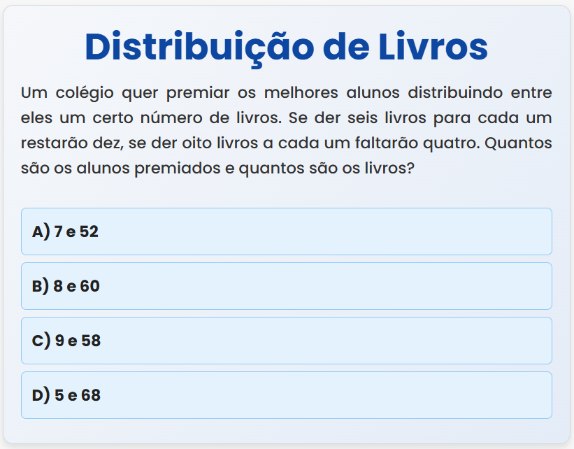 Distribuição de Livros Um colégio quer premiar os melhores alunos distribuindo entre eles um certo número de livros. Se der