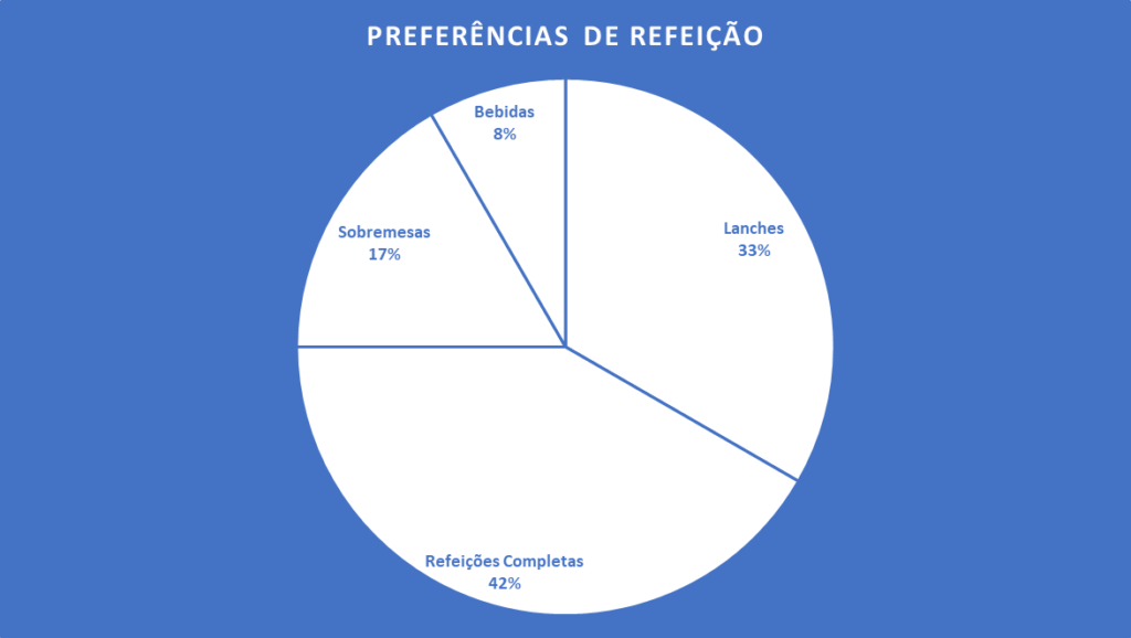 • Aplicação: Cada setor representará uma categoria (tipo de refeição) e seu percentual no total de vendas.