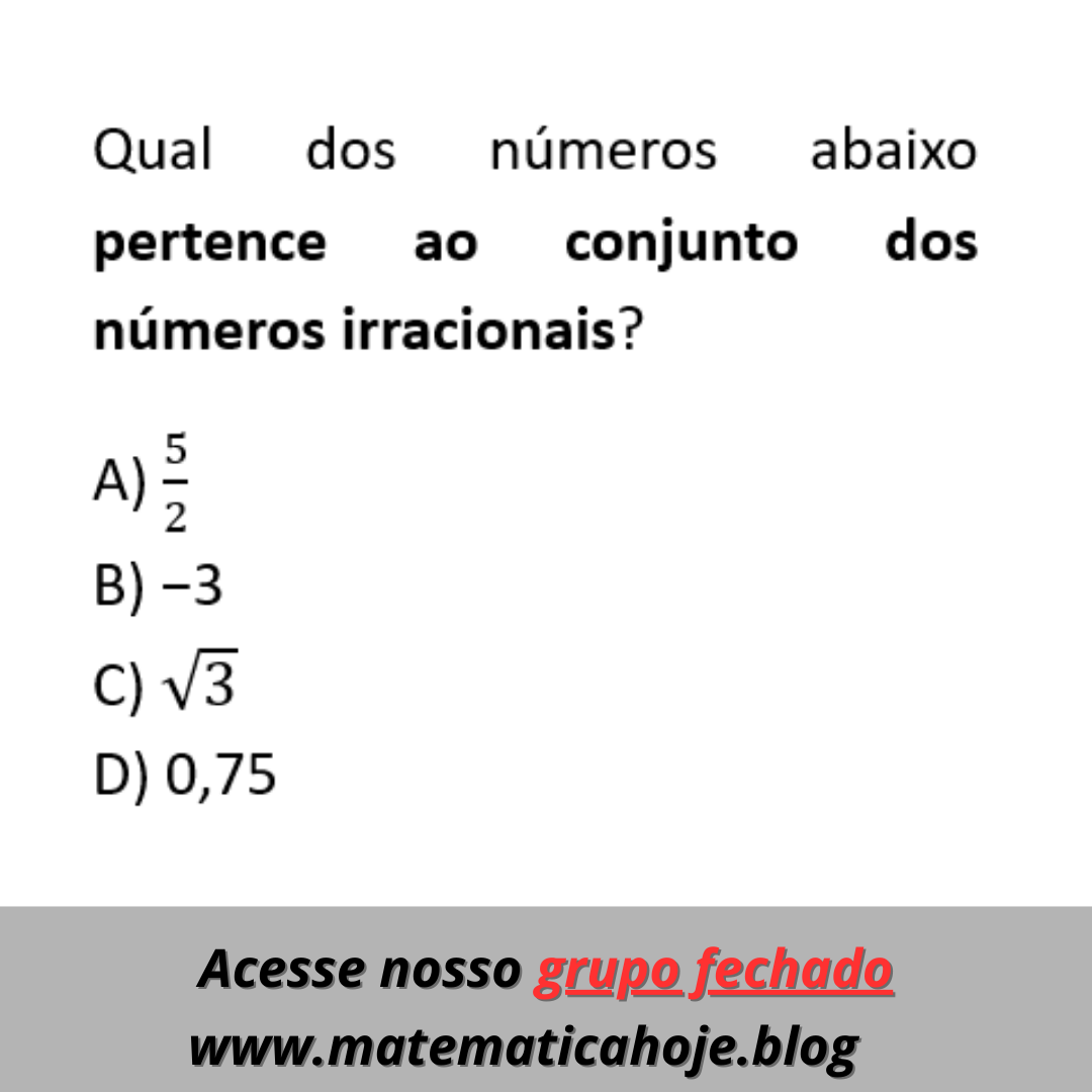 O problema pede identificar qual número pertence ao conjunto dos números irracionais.