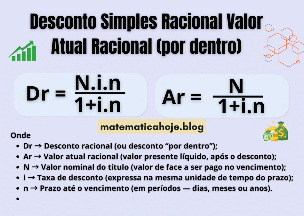 Desconto Simples Racional (Por Dentro) — Valor Atual Racional: Fórmulas, Exemplos e Exercícios Aprenda a calcular o desconto simples racional e