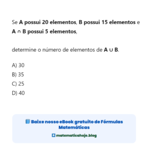 Se A possui 20 elementos, B possui 15 elementos e A ∩ B possui 5 elementos,