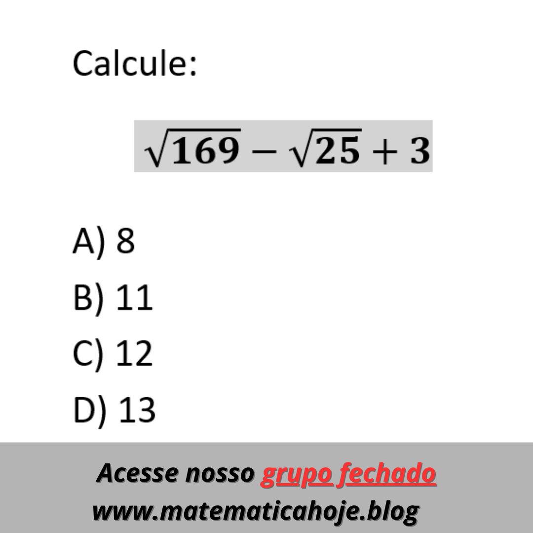 A raiz quadrada de um número é o valor que, multiplicado por ele mesmo, produz esse número. Por exemplo, \(13 \times 13 = 169\), portanto \( \sqrt{169} = 13 \). :contentReference[oaicite:1]{index=1}