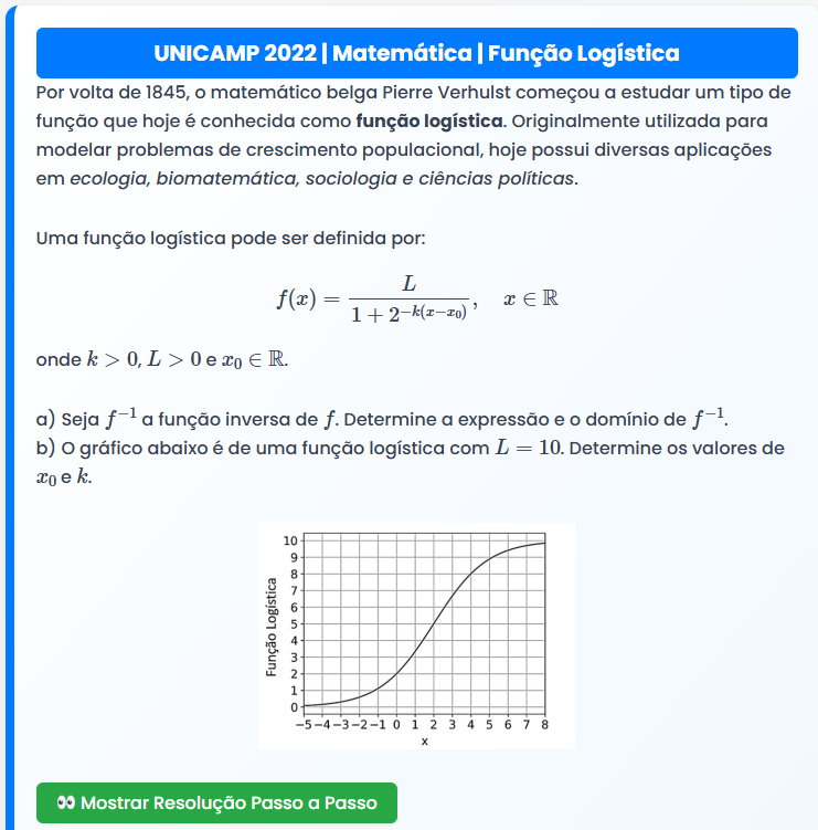 Continue lendoUNICAMP 2022 | Matemática | Função Logística UNICAMP 2022 | Matemática | Função Logística Por volta de 1845, o matemático