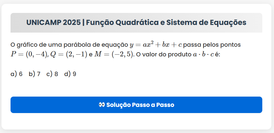 Continue lendoUNICAMP 2025 | Matemática | 1ª Fase | Função Quadrática e Sistema de Equações UNICAMP 2025 | Matemática | 1ª