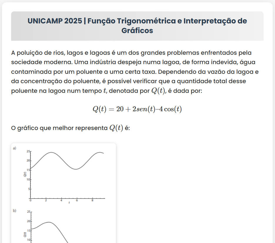 Continue lendoUNICAMP 2025 | Matemática | 1ª Fase | Função Trigonométrica e Interpretação de Gráficos UNICAMP 2025 | Matemática | 1ª