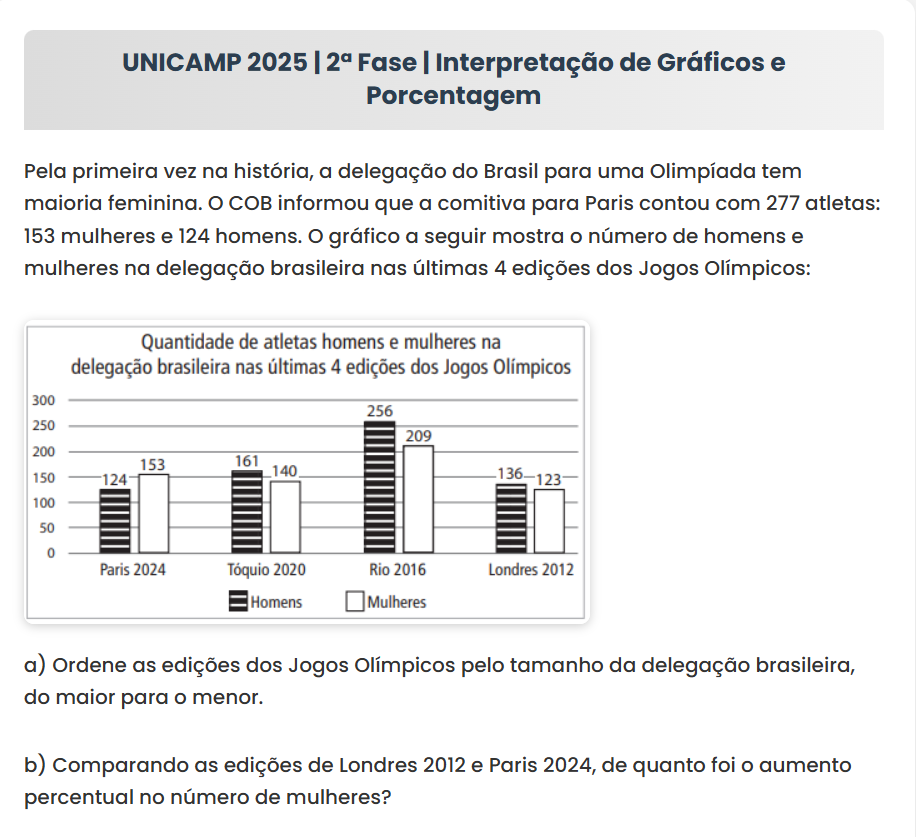 Continue lendoUNICAMP 2025 | Matemática | 2ª Fase | Interpretação de Gráficos e Porcentagem UNICAMP 2025 | Matemática | 2ª Fase