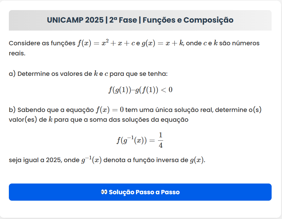 Continue lendoUNICAMP 2025 | Matemática | 2ª Fase | Funções e Composição UNICAMP 2025 | Matemática | 2ª Fase | Funções