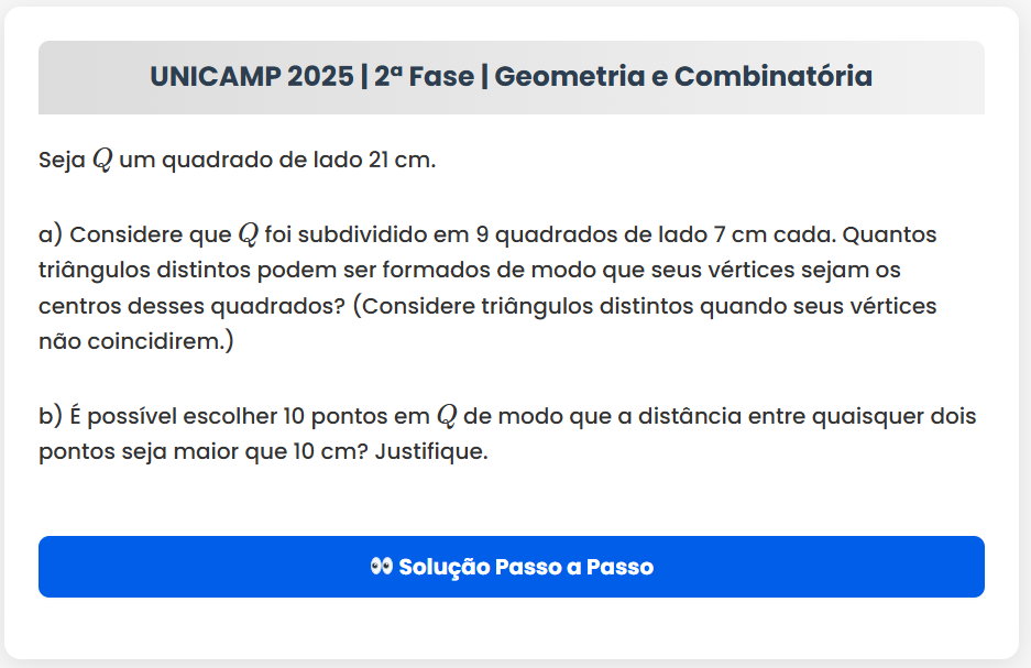 UNICAMP 2025 | Matemática | 2ª Fase | Geometria e Combinatória UNICAMP 2025 | Matemática | 2ª Fase | Geometria