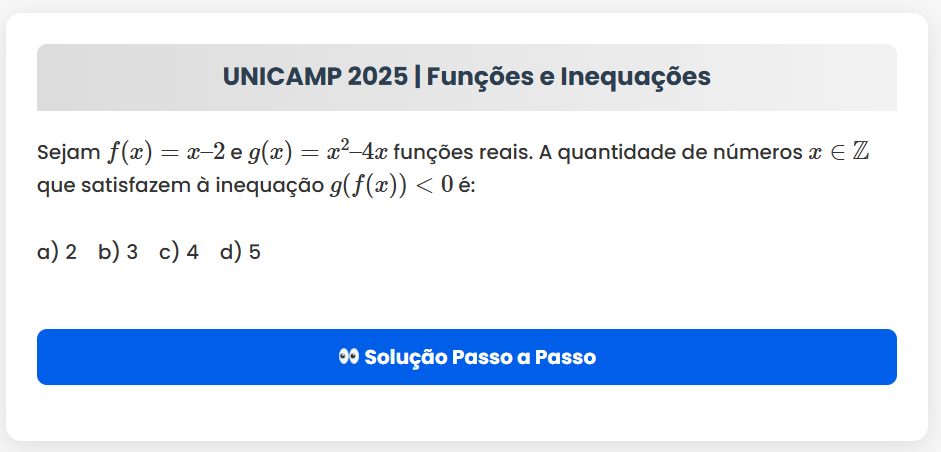 Continue lendoUNICAMP 2025 | Matemática | 1ª Fase | Funções e Inequações UNICAMP 2025 | Matemática | 1ª Fase | Funções