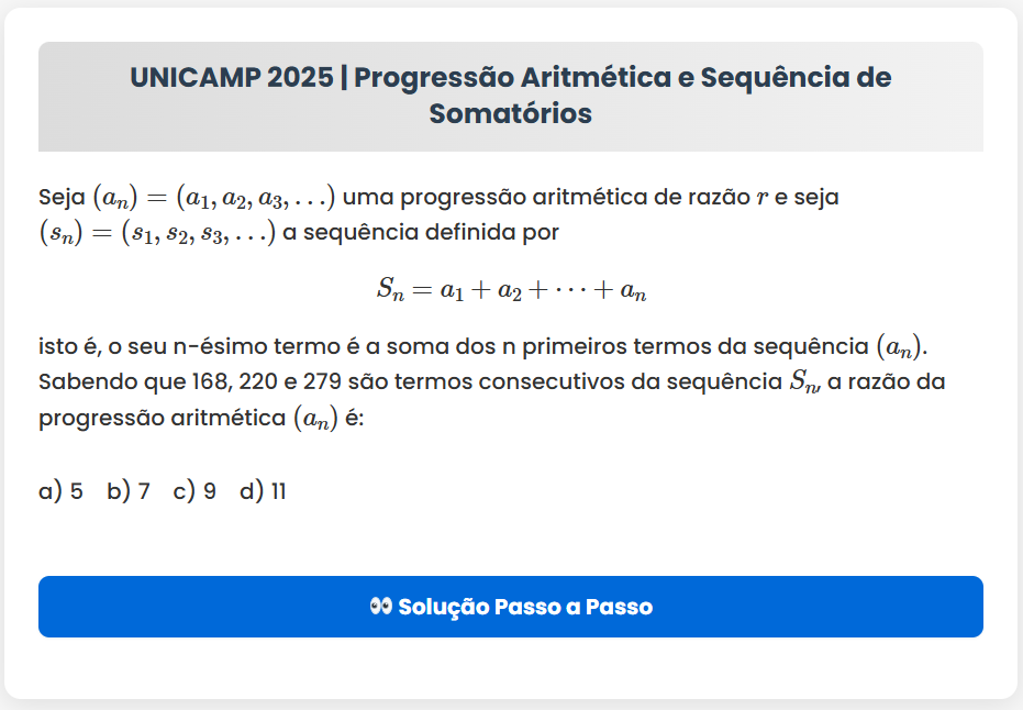 UNICAMP 2025 | Matemática | 1ª Fase | Progressão Aritmética e Sequência de Somatórios UNICAMP 2025 | Matemática | 1ª